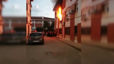En la segunda planta de un bloque de la barriada de la Garza de Nerva, en Huelva, 4 personas se quedaron atrapadas en el interior de su vivienda. Un incendio impidió que pudieran salir de la casa, hasta que fueron rescatados por los bomberos. Una quinta afectada, la mujer que vivía encima, decidió saltar por la ventana y resultó herida tras la caída.