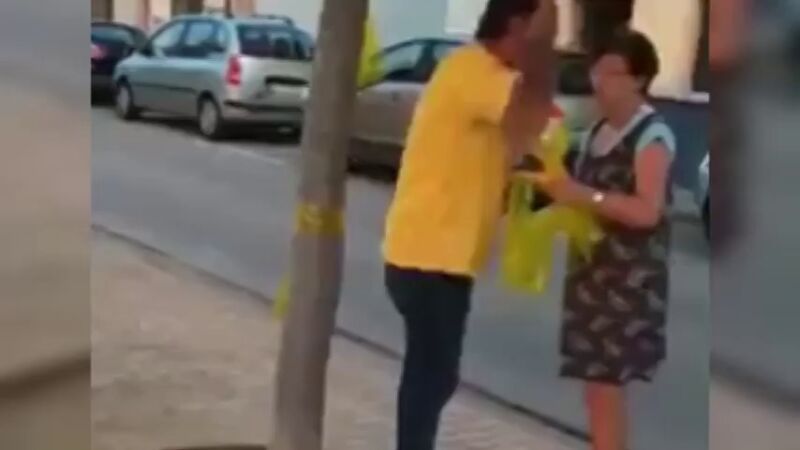 La página de Facebook de Tabarnia ha difundido un vídeo en el que se ve como un hombre se encara a una mujer que estaba retirando lazos amarillos en una calle. El hombre recrimina a la mujer que quite los lazos argumentando que es su pueblo. Posteriormente, siguiere a la mujer que si quiere poner una bandera española "que la ponga" pero que no quite los lazos.