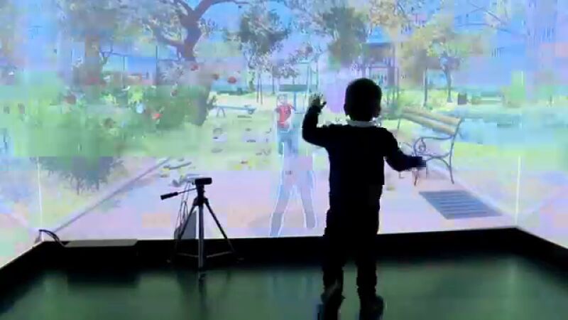 Sobre las paredes de una habitación o pantalla se proyecta un sistema de realidad virtual integrando la imagen del menor mientras realiza tareas. Una cámara capta sus movimientos lo que hace posible "la detección del autismo a través del análisis de biomarcadores relacionados con el comportamiento, la actividad motora y la dirección de la mirada" explica el director del instituto Human-Tech de la UPV, Mariano Alcañiz.