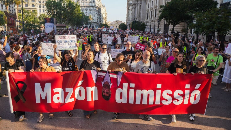 Encabezada por familiares de las víctimas que portaban fotos de sus seres queridos, la manifestación estuvo protagonizada por carteles con mensajes contundentes como "Ni perdonamos ni olvidamos", "Mazón no tienes vergüenza", "El president, a Picassent" o, entre otros,"No son muertes, son asesinatos".