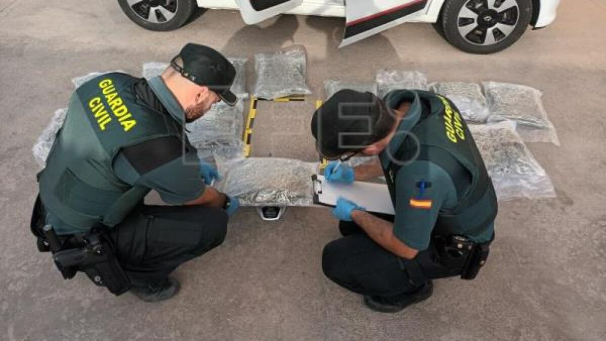 De forma inmediata dio aviso a la Guardia Civil, y varios agentes se personaron en el lugar. Iniciaron entonces un registro en el interior del vehículo y descubrieron una bolsa de plástico transparente prensado al vacío que tenía varios cogollos de marihuana en su interior. En total localizaron 16,7 kilos de dicha sustancia psicotrópica. Las autoridades también confirmaron que la placa de matrícula del vehículo era italiana.
