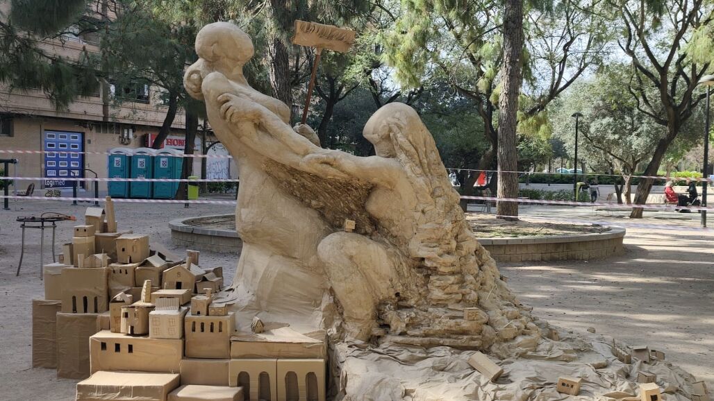 Sin embargo hay una que no arderá esta noche. Se trata de una falla en homenaje a las víctimas y afectados por la tragedia del pasado 29 de octubre de 2024 en la que fallecieron 230 en la Comunidad Valenciana. La obra, titulada 'No olvidar la DANA', está hecha con barro y representa a una voluntaria sacando del barro y salvando a una mujer.