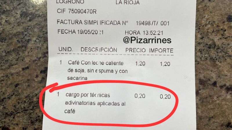 El propio Alberto ha reconocido que el cargo por "técnicas adivinatorias aplicadas al café" lo realiza cuando van clientes que no saben qué tomar. Es en ese momento cuando Alberto aprovecha y les dice que "si te lo adivino te tengo que cobrar un plus para que me lo eches en el bote" y es por eso que el dueño le ha dicho que si acertaba lo que quería tomar le cobraría una pequeña comisión. Y así ha sido.
