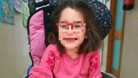 Vega de seis años tiene parálisis cerebral, sus padres a través de la plataforma Change.org han denunciado que su hija y sus 16 compañeros de clase no están correctamente atendidos en su colegio de Málaga.