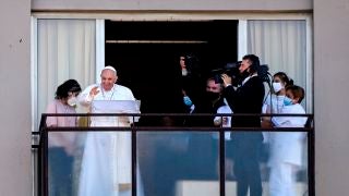 El papa Francisco reaparece en el balcón del hospital donde fue intervenido en una operación de colon la semana pasada. Evoluciona favorablemente.