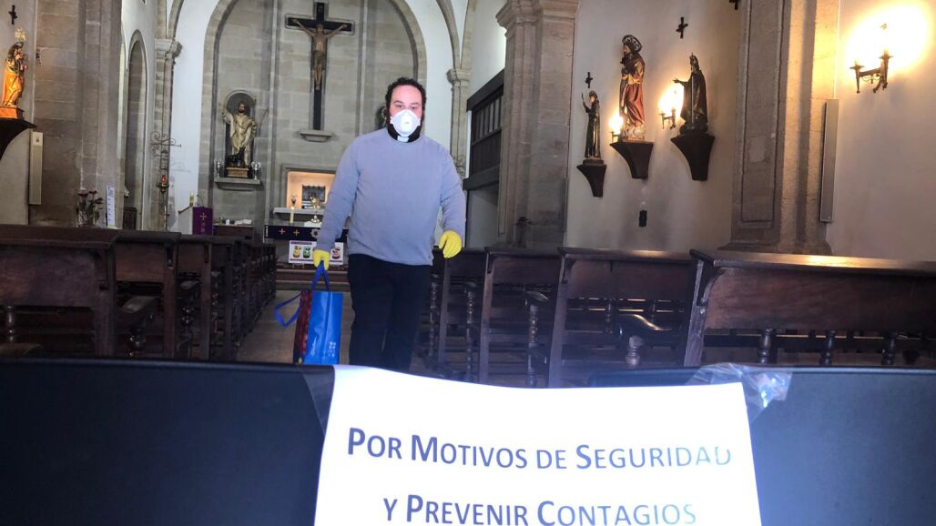El párroco de San Foilán de Lugo quiere arrimar el hombro y atender todas las necesidades de sus fieles durante el confinamiento por coronavirus. Además de ir a domicilio para confesarles, Jose Manuel Penela se pone guantes y mascarillas y no duda en gestionar la compra del que lo necesite o charlar durante horas para mitigar la soledad de muchos.