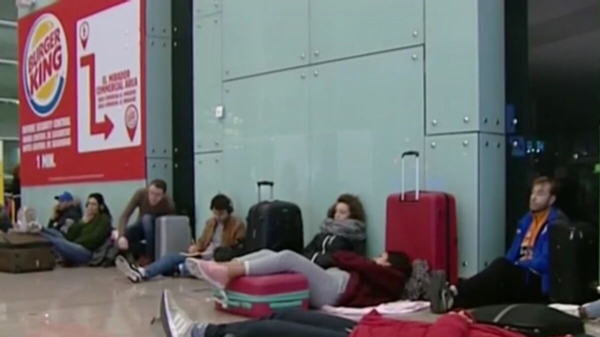 Centenares de pasajeros pasan la noche en el aeropuerto del Prat para evitar problemas por las movilizaciones de los CDR