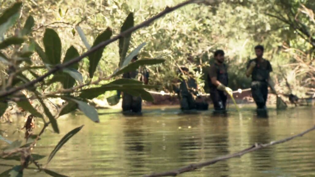Nos adentramos en las aguas del Río Guadarrama de Madrid para acompañar en su trabajo a los tramperos de la Patrulla Fauna de la Comunidad de Madrid. Son jóvenes pero expertos y altamente especializados en capturar todo tipo de especies sin causarles daño alguno. Hoy su objetivo es capturar todos los peces que encontremos en un tramo de río para hacer un muestreo de qué tipo de especies hay y en qué densidad. Así que, con las botas de goma puestas, entramos con ellos en el cauce... Para atraer a los peces utilizan un aparato que emite suavísimas frecuencias eléctricas que atraen y adormecen a los peces para poderlos capturar fácilmente. Es una técnica absolutamente indolora. Los peces no sufren, hay que tener en cuenta que estamos nosotros también metidos en el agua y apenas sentimos nada...