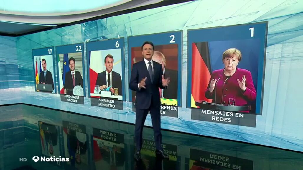 El británico Boris Johnson solo ha dado dos discursos solemnes. Hay que recordar que estuvo ingresado y muy grave por Covid.19, pero ha hablado otras 15 veces entre ruedas de prensa y vídeos en redes sociales. La más escueta: Angela Merkel. Solo ha dado un mensaje institucional en el sentido estricto, y ha sido algo muy excepcional.