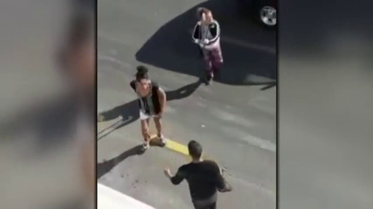 Los hechos tuvieron lugar sobre las 11 horas y la pelea se produjo en plena carretera lo que provocó que los coches no pudieran circular.Una testigo grabó en vídeo de la pelea. En las imágenes se puede ver cómo las mujeres insultan al hombre y le golpean con un objeto metálico.