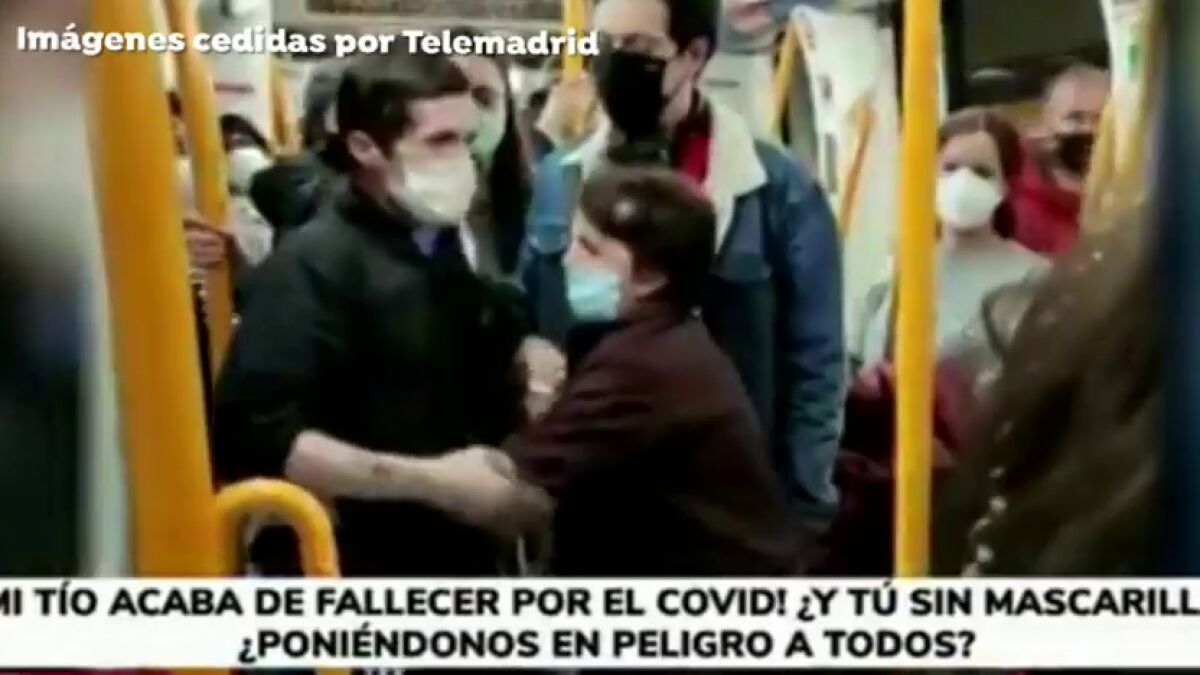 "Mi tío acaba de fallecer por el Covid y tú sin mascarilla, poniéndonos en peligro a todos" le espeta una viajera del metro de Madrid a un joven. La fuerte discusión tienen lugar en el interior del vagón del transporte público madrileño para evitar contagios de coronavirus ante el incumplimiento de una medida de protección.