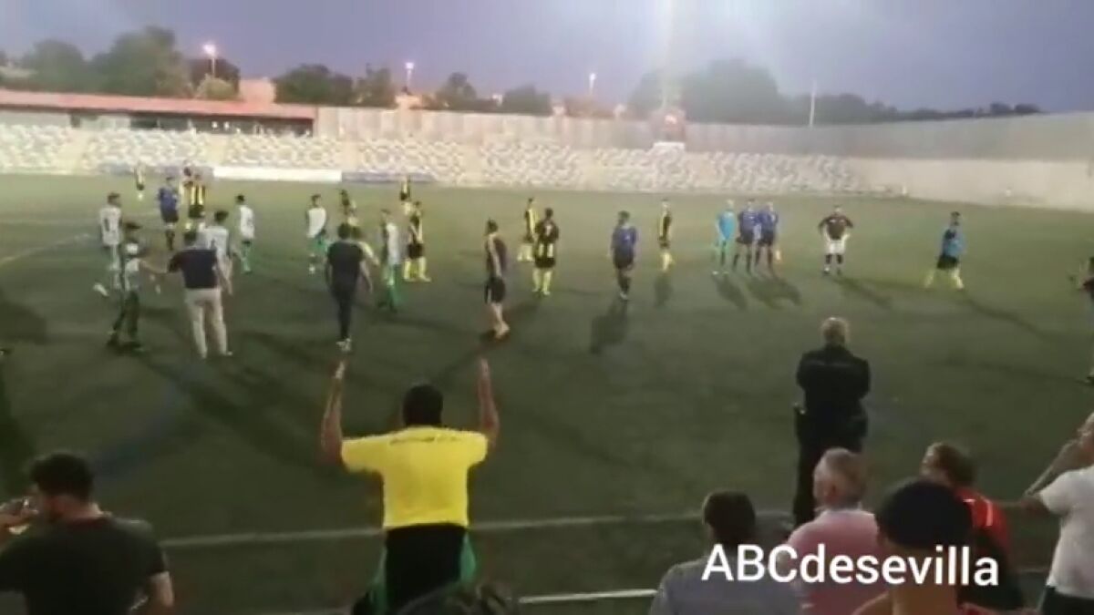 A falta de 4 minutos para que terminara el encuentro por el ascenso a División de Honor de fútbol entre la Peña Rociera y el Villafranco, que se disputaba en el estadio Ciudad de Alcalá de la localidad sevillana de Alcalá de Guadaíra.La pelea se originó, según ha informado la Policía, tras celebración de un gol por parte del equipo de la Peña Rociera. Se desató una trifulca en el césped en el que participaron jugadores y aficionados.