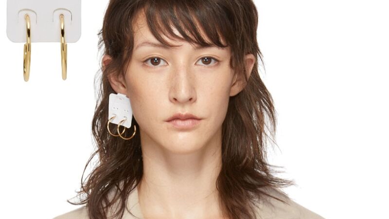 En este caso, se trata de unos pendientes de bola en dorado que también invita a ser colocados junto a su cartón formando un forma muy extraña que muchos en redes sociales comparan con una plantilla para el calzado. Su precio oscila los 170 euros.
