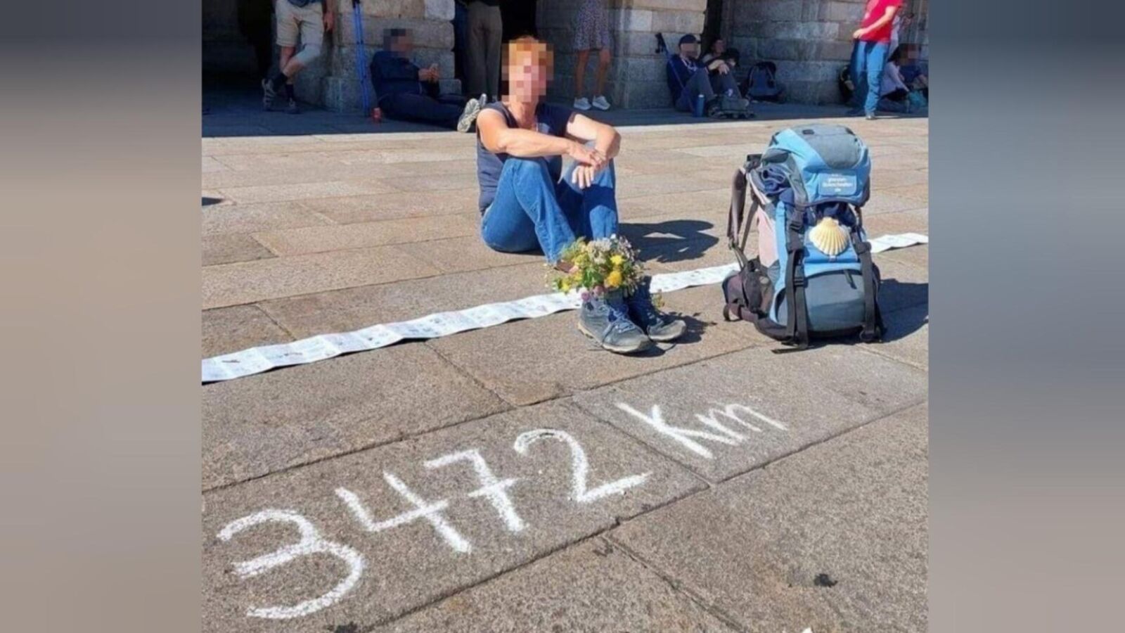 La sorpresa de los visitantes que pasaron este fin de semana por la Plaza do Obradoiro de Santiago fue mayúscula, y pronto se extendió por las redes. Las críticas hacia una caminante alemana, que decidió pintar con tiza sobre la piedra de la emblemática plaza los kilómetros recorridos en el Camino de Santiago, crecen en las últimas horas, sobre todo, en los foros de peregrinos.