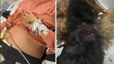 La gestante está fuera de peligro pero sufrió golpes en varias partes de su cuerpo. Su perrita está gravemente herida.
