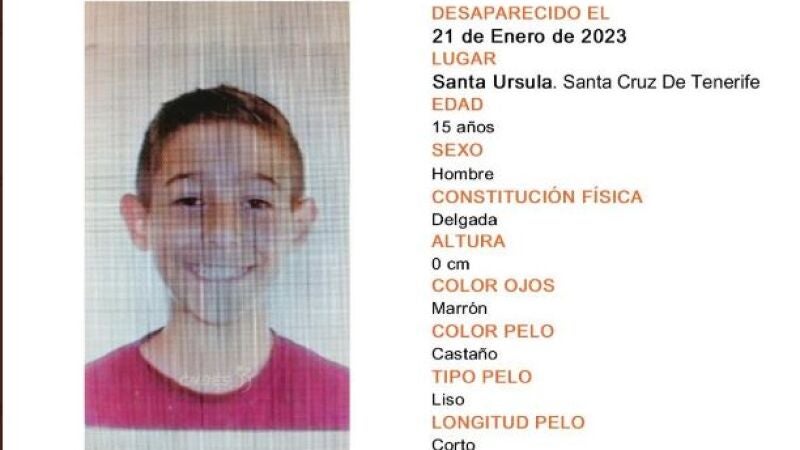 El pequeño Eduardo Isaac Perera Fernández, de 15 años, lleva desaparecido desde el pasado 21 de enero, en el municipio de Santa Úrsula, en Tenerife.