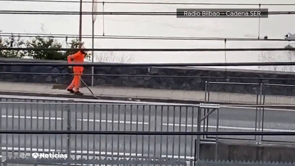 En ellas, se puede apreciar a un trabajador arrojando, este pasado lunes, basura a la ría que pasa por debajo del puente en el que se encuentra tras recogerla con una pala. Plásticos, latas, botellas o colillas son algunas cosas que vierte al agua, en tan solo un momento, este trabajador de una empresa de limpieza contratada por la Diputación de Vizcaya, la UTE.