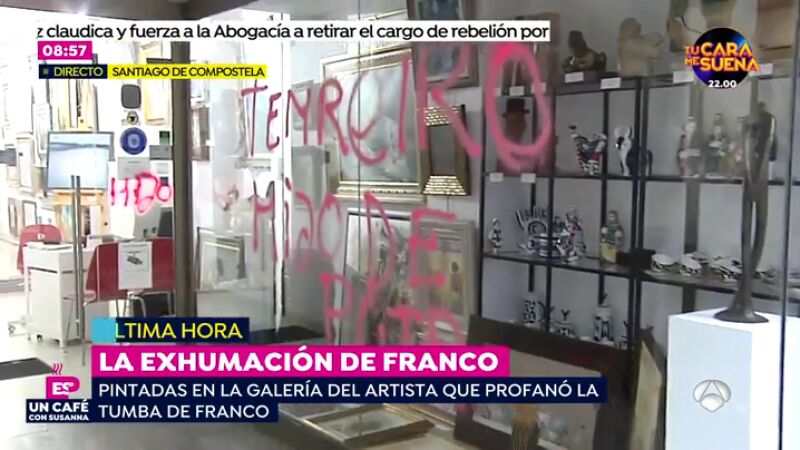 La galería del artista que profanó la tumba de Franco amanece pintada con insultos