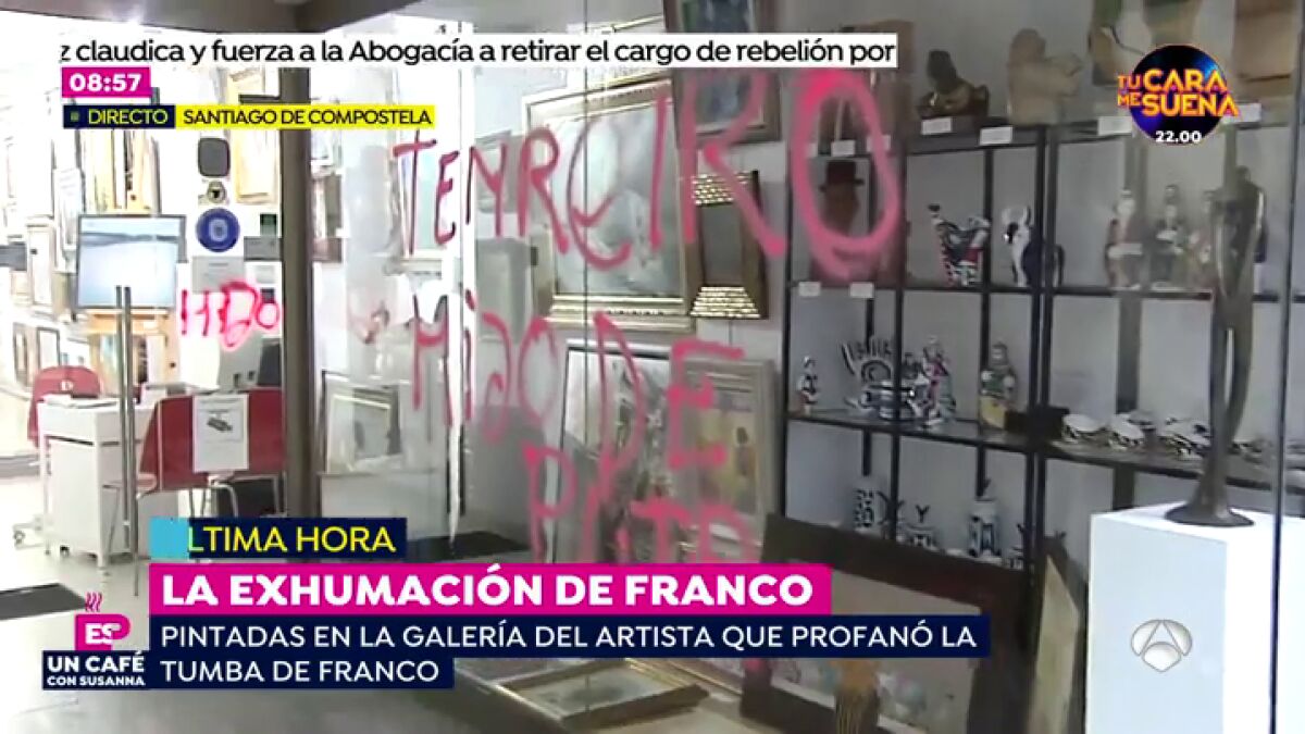 La galería del artista que profanó la tumba de Franco, Enrique Tenreiro, ha amanecido pintada con insultos en color rojo. "Tenreiro hijo de puta", se puede leer claramente en el escaparate del establecimiento.