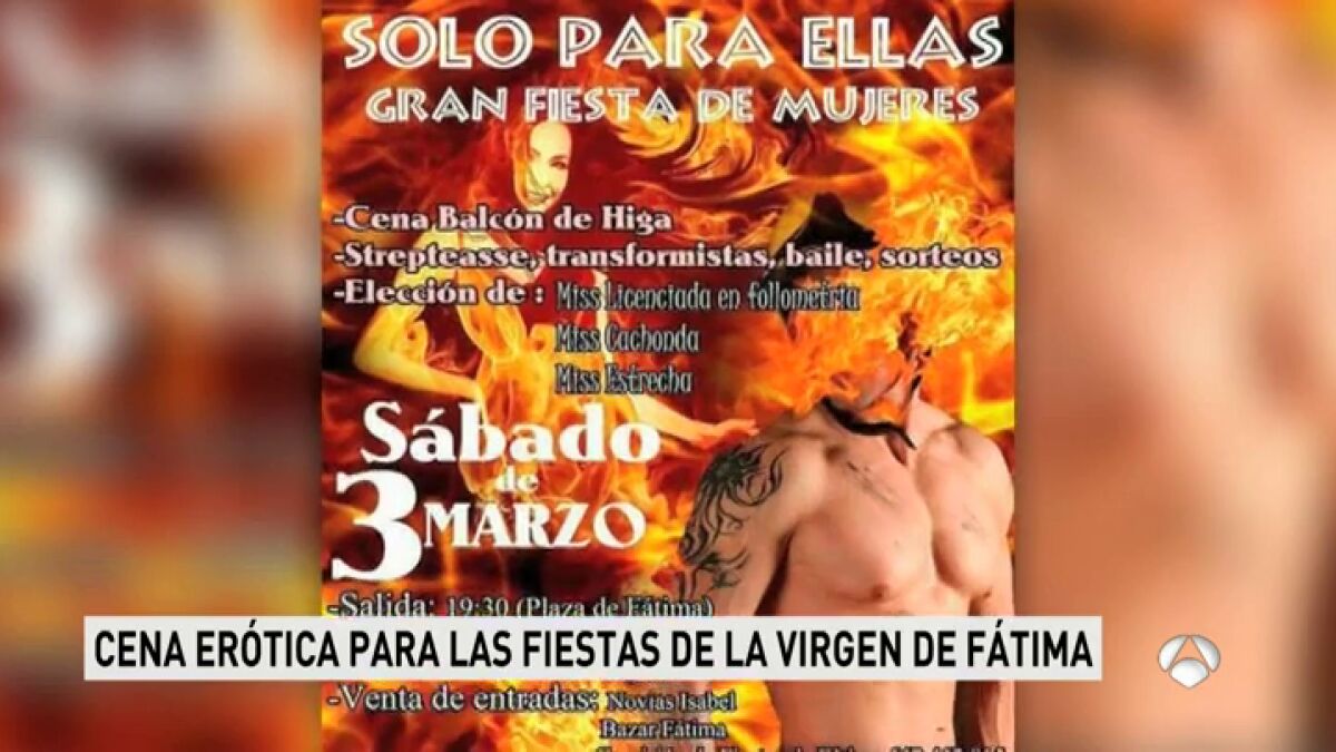 Se trata de una cena benéfica que se celebra desde hace más de 20 años. El dinero recaudado se destina a las fiestas de la Virgen de Fátima. Pero las críticas desde las plataformas feministas no han tardado en llegar, así como desde la Iglesia: el párroco asegura que no quiere ese dinero porque es "indigno para la Virgen".