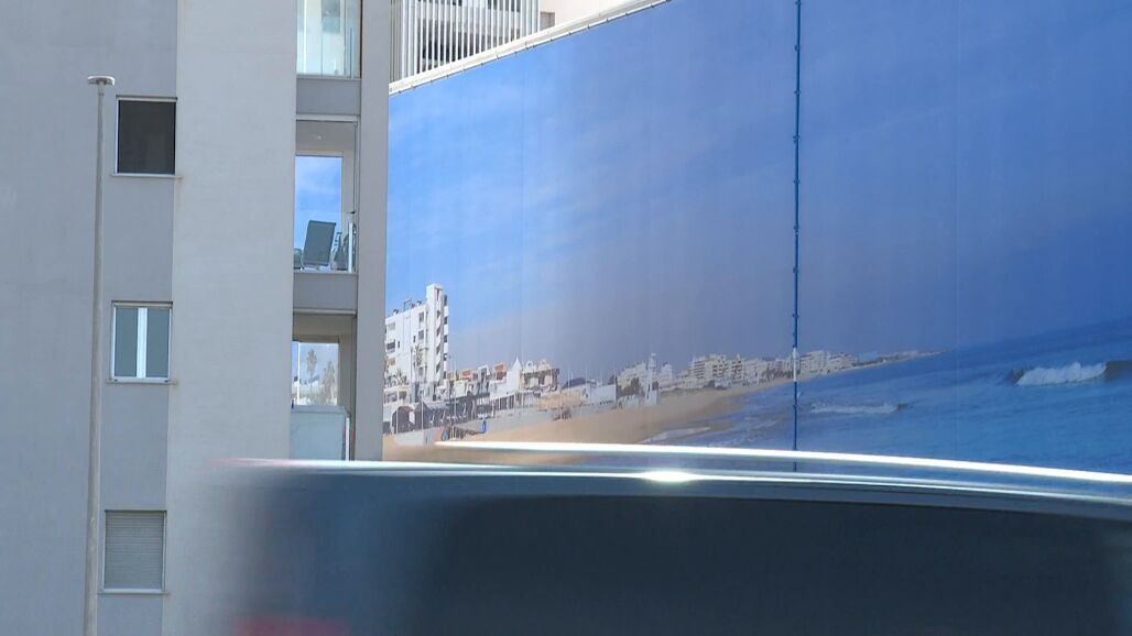 En un intento por mitigar el malestar de los residentes, el ayuntamiento, en colaboración con la empresa constructora, ha optado por una solución: la instalación de una gigantesca lona decorativa que reproduce una vista de la playa.