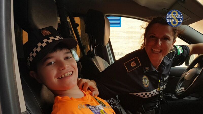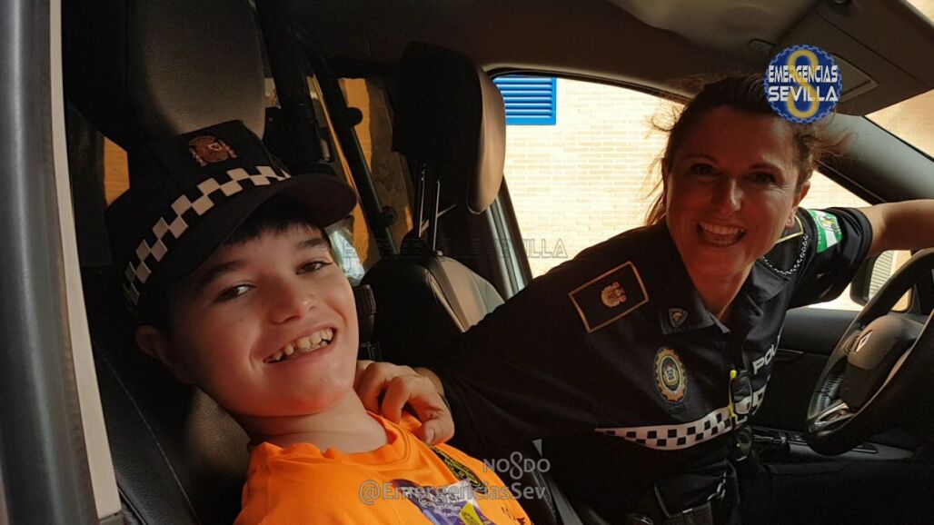 Agentes de la Policía Local y funcionarios del Cuerpo de Bomberos, adscritos al Area de Seguridad, Movilidad y Fiestas Mayores del Ayuntamiento de Sevilla, cumplieron el jueves el sueño de Juanca, un niño sevillano que sufre una enfermedad de las denominadas raras, visitándolo en su propia casa y montándolo en vehículos de ambos cuerpos, tal y como había solicitado por carta su madre, Remedios.