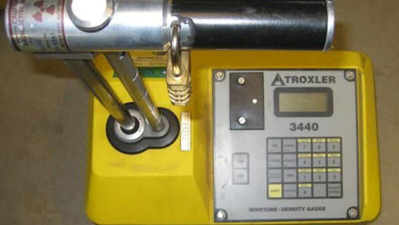 Se trata de un equipo de medición de densidad y humedad de suelos que contiene fuentes radiactivas de categoría cuatro que es improbable que sean peligrosas para las personas siempre que no se abra o se destruya el maletín.