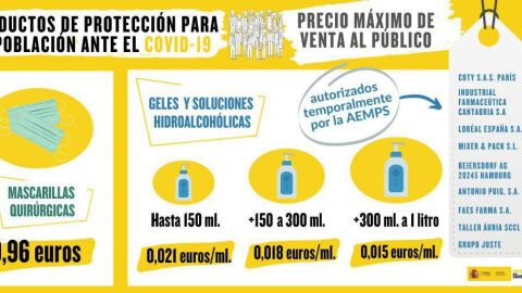 La Agencia Española de Medicamentos y Productos Sanitarios (AEMPS) autoriza precios fijados en geles desinfectantes solo a nueve empresas, según lo establecido con el Ministerio de Sanidad, durante la crisis del coronavirus.
