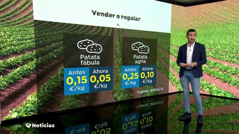 Hasta ahora los productores y agricultores estaban vendiendo a unos 15 céntimos el kilo de una de las patatas más comunes, la patata fábula, pero las tornas han cambiado y el precio actual ha caído hasta los 5 céntimos el kilo. A la patata agria le ha pasado algo similar, ya que su precio ha pasado de 25 céntimos el kilo a 10 céntimos.
