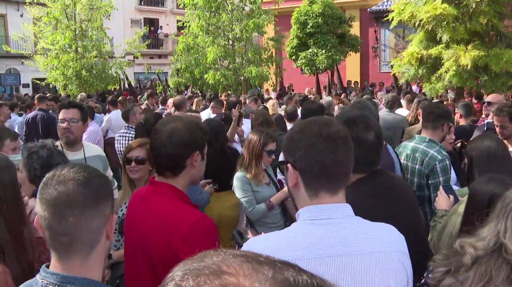 El fin de semana ha marcado el comienzo de la Semana Santa. Las procesiones han regresado a las calles de la capital andaluza tras dos años. Por ello, también han vuelto las habituales aglomeraciones. Pese a que aún es obligatorio llevar mascarilla en los exteriores sin distancia, pocos fieles han utilizado la protección sanitaria. "No escarmentamos", dice uno de los asistentes en relación con el coronavirus.