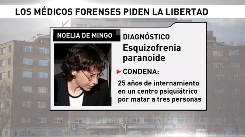 De Mingo fue condenada en 2006 por matar a tres personas y herir a siete en la Fundación Jiménez Díaz de Madrid en 2003, pero se consideró probado que padecía "esquizofrenia tipo paranoide con delirios de persecución y alucinaciones que afectaba a todo tipo de relaciones sociales y laborales y en pleno brote violento".