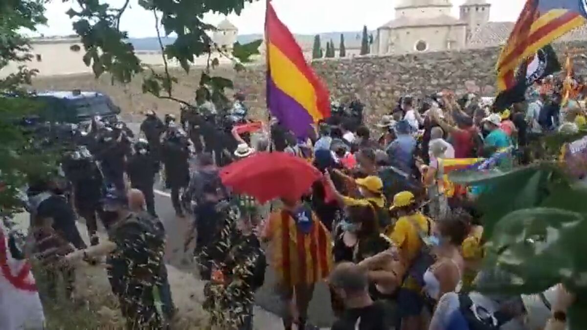 La marcha comenzó en L'Espluga de Fancoli y, sobre las 11.30 de la mañana han llegado a las inmediaciones del monasterio donde había un cordón policial de unos veinte mossos y una decena de furgones, que les ha impedido acercarse a las inmediaciones. La mayoría de los manifestantes van con la mascarilla obligatoria en Cataluña desde hace varios días debido al coronavirus.