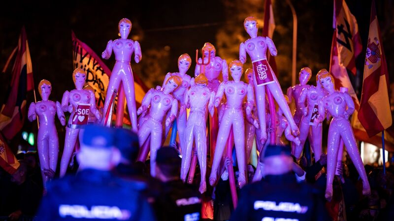 Las protestas reunieron manifestantes con muñecas hinchables