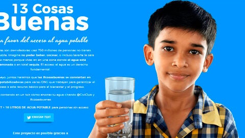 El proyecto '13 Cosas Buenas' transforma en diez litros de agua potable cada tuit