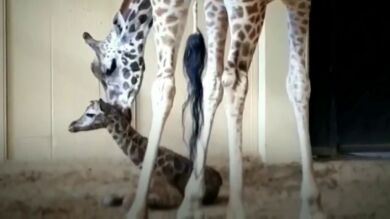 Publican las primeras imágenes de la cría de jirafa recién nacida del Zoo de Barcelona