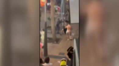 En las imágenes difundidas en redes sociales se aprecia cómo le propinan patadas, puñetazos y terminan tirándolo al suelo. Además, también se aprecia cómo se acercan otras personas que estaban en la calle e intentan separarlos para evitar la pelea. Los detenidos son dos ciudadanos belgas de 34 y 31 años que iban disfrazados y terminaron agrediendo a un tercero que iba desnudo, sólo llevaba puesto un delantal.