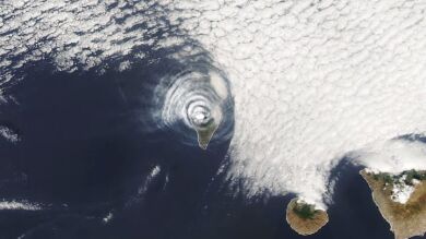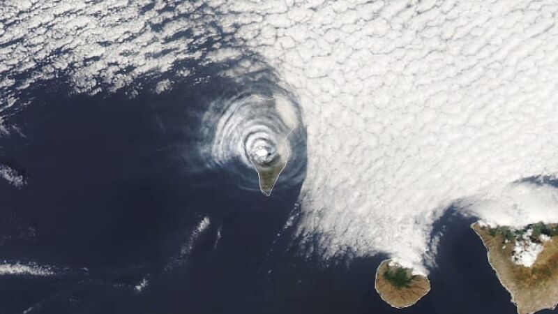 Las imágenes de satélite de la NASA han captado una curiosa formación de nubes en forma de onda días después de que el volcán Cumbre Vieja entrase en erupción