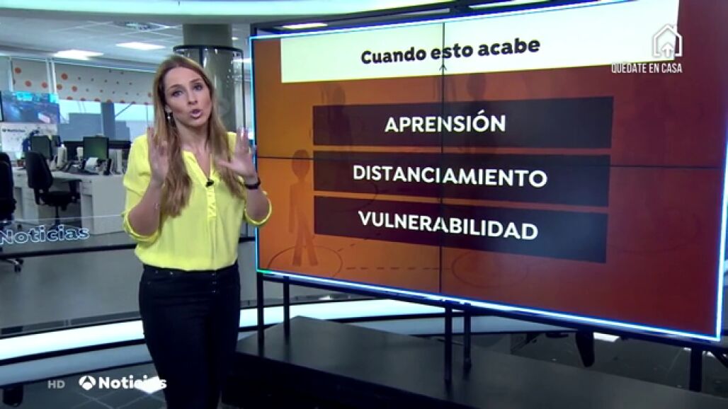 Los expertos avisan de que posiblemente padezcamos distanciamiento, aprensión o vulnerabilidad tras el estado de alarma por el coronavirus. Eso sí, los expertos aseguran que será algo que suceda sólo en inicio, luego volveremos a nuestro ser, escuchen.