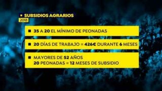 La ley establece que por 20 peonadas trabajadas al año, el jornalero consigue 426 euros al mes durante seis meses. Al año siguiente estaría cobrando este subsidio.