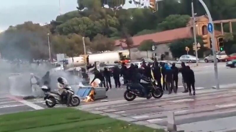 Un grupo de entre 10 y 20 personas no identificadas se ha concentrado al final de la Avenida Diagonal, frente al Palacio de Pedralbes, y ha colocado contenedores a modo de barricadas a lo largo de todos los carriles de la avenida y les han prendido fuego.
