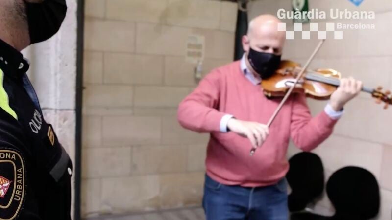 En señal de agradecimiento, dedicó una pieza musical con otro de sus violines a los agentes, un momento que han querido compartir con los usuarios en redes sociales.