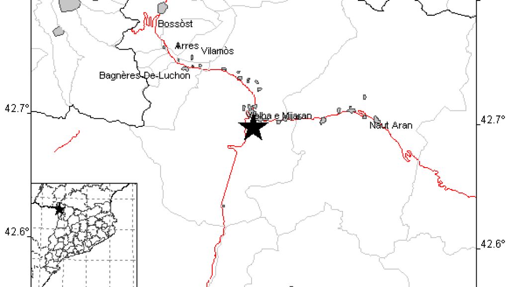El Instituto Cartográfico y Geológico de Cataluña registró cuando faltaban pocos minutos para las seis de la tarde un terremoto de magnitud 2,2 en la escala de Richter con epicentro en Vielha e Mijaran.