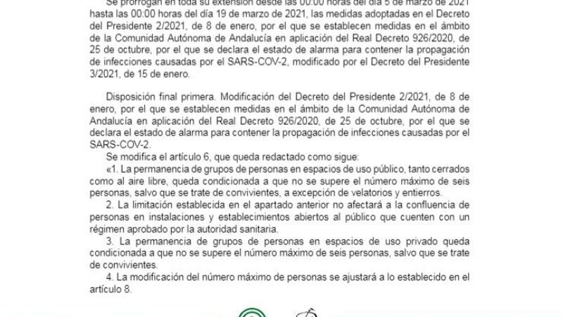 BOJA de hoy 5 de marzo sobre restricciones en municipios de Andalucía en PDF