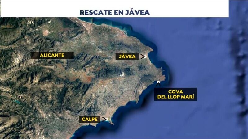 Los rescatados se refugiaron en la Cova del Llop Marí, ubicada en una zona de difícil acceso cercana a la playa de La Granadella. Acudieron hasta allí para refugiarse del fuerte temporal que les sorprendió cuando practicaban paddle surf.