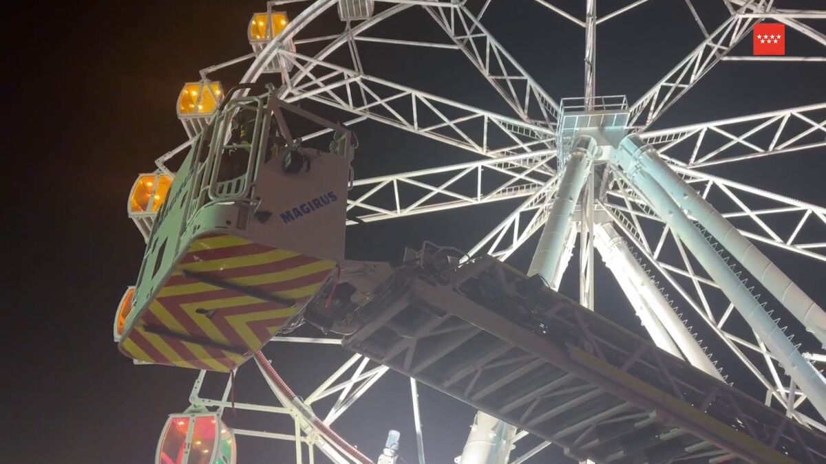 Rescatan a 19 personas atrapadas en una noria que dejó de funcionar a 35 metros de altura en Torrejón de Ardoz