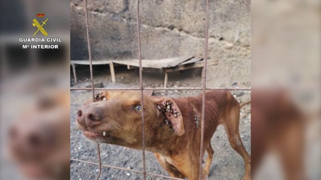 Los cinco animales, cuatro podencos canarios y un pointer, estaban escuálidos, tenían parásitos, les faltaba pelo y tenía problemas de movilidad, según una nota de la Guardia Civil, que además señala que en el lugar no había ningún alimento para los animales, solo "un recipiente con poco agua y de color verde".