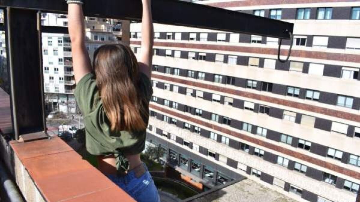 Quería colgarse de una viga porque sobresalía de la fachada mientras un amigo le hacía fotos pero sufrió un ataque de nervios al percatarse de la situación de extremo peligro en que se encontraba.
