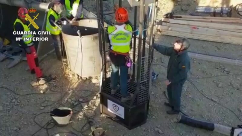Primeras imágenes del equipo de rescate de la Guardia Civil preparándose para acceder al pozo