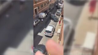En el momento en el que se consigue que el vehículo causante de los destrozos se frene, los ocupantes del mismo salen corriendo a la calzada para protagonizar un enfrentamiento verbal entre ellos. Al alertarse el resto de los vecinos, por el ruido y los daños ocasionados, los cuatro miembros que viajaban en el vehículo escaparon corriendo del lugar.