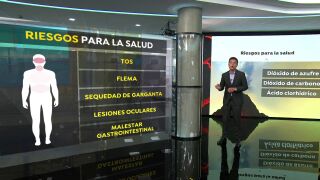Las partículas que escupe el volcán de La Palma pueden ocasionar daños en la salud de las personas que se encuentren en la zona. Los riesgos del dióxido de azufre son sobre todo de tipo respiratorio, pero también se pueden producir lesiones en los ojos, piel o aparato digestivo.